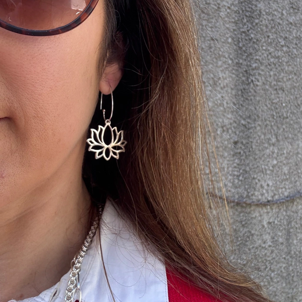 Los aros son de plata 925, el tamaño de la flor es de 3 x 2,5 cm aproximadamente.